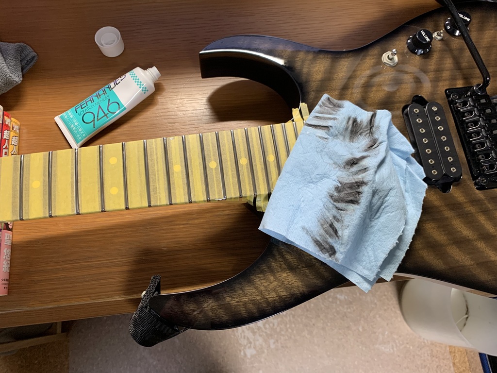 MTギターワークスで大工事をしてからほとんど弾いて無かったけどフレットを磨くとそれなりに汚れが。